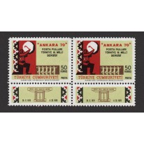 Znaczek w parce z przywieszką upamiętniający narodową wystawę filatelistyczną w Ankarze.