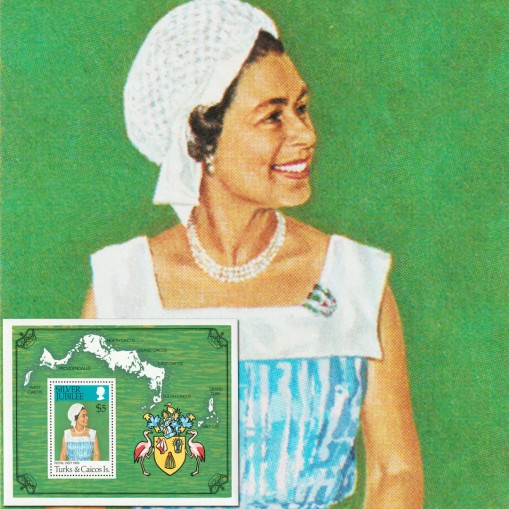 Znaczek w bloku upamiętniający 25. rocznicę wstąpienia na tron królowej Elżbiety II.