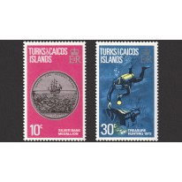 Na znaczkach widnieją poszukiwacze skarbów na dnie morskim około roku 1700 i w roku 1973, a także awers i rewers srebrnego medalionu.