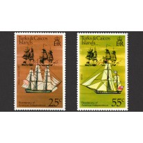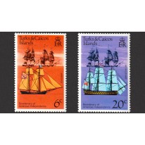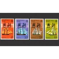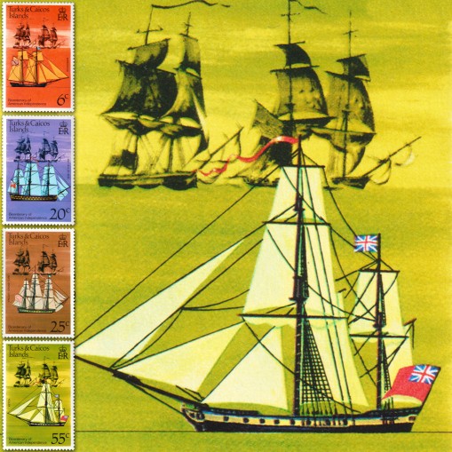 Na znaczkach widnieją amerykańskie i brytyjskie żaglowce.