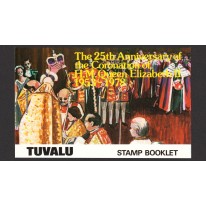 Znaczki w zeszyciku filatelistycznym upamiętniające 25. rocznicę wstąpienia na tron królowej Elżbiety II.