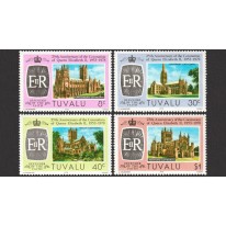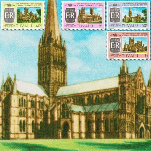 Na znaczkach widnieją słynne angielskie katedry: w Canterbury, w Salisbury, w Wells i w Hereford.