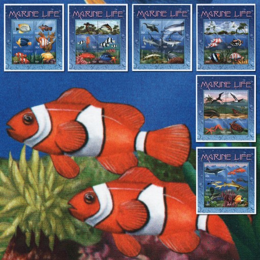 Seria w sześciu arkuszach, na znaczkach której widnieją następujące gatunki fauny Tuvalu: