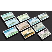 Na znaczkach przedstawiono statki i okręty, które uczestniczyły w II wojnie światowej, a są to kolejno: