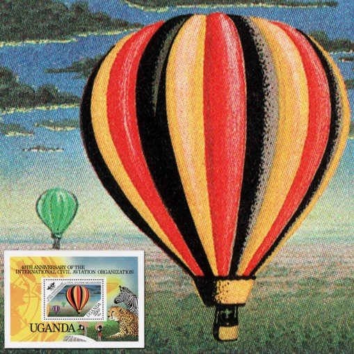 Znaczek w bloku upamiętniający 40-lecie Organizacji Międzynarodowego Lotnictwa Cywilnego.