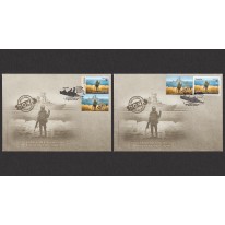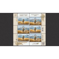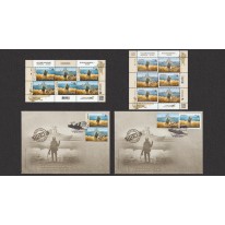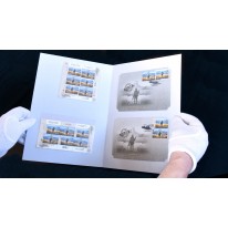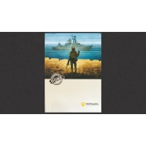 Dwa znaczki w arkuszach i dwie koperty pierwszego dnia obiegu w okolicznościowym folderze upamiętniające zatopienie przez ukraińskie pociski rosyjskiego okrętu „Moskwa”.