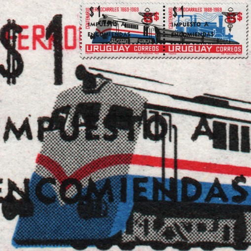 Seria wydana pierwotnie w 1969 roku z okazji stulecia kolei urugwajskiej, tym razem z nadrukiem „Impuesto a Encomiendas” wskazującym na ich przeznaczenie jako opłata za przesyłkę paczek, kaduceuszem (symbolem handlu) i przedrukiem nominału.