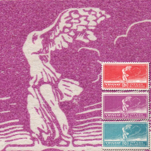 Na znaczkach widnieje rzeźba Nike z Samotraki pochodząca z III lub II wieku p.n.e.