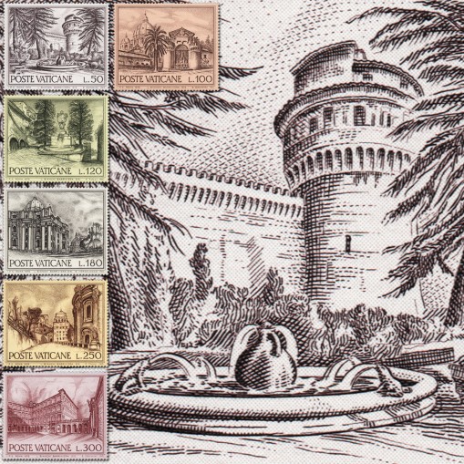 Seria, na znaczkach której widnieją następujące budynki watykańskie: