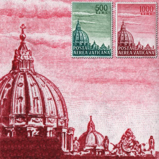 Na znaczkach widnieje kopuła bazyliki świętego Piotra.