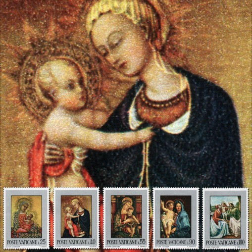 Seria, na znaczkach której widnieją przedstawienia Madonny z Dzieciątkiem autorstwa następujących malarzy: Francesco Ghissi, Sasetta, Carlo Crivelli, Carlo Maratta i Gisberto Ceracchini.