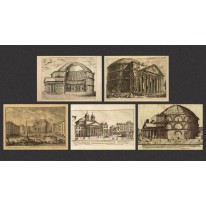 Zestaw pięciu okolicznościowych kartek pocztowych z nadrukowanymi znaczkami upamiętniający 1400. rocznicę przeznaczenia rzymskiego panteonu na kościół pw. Santa Maria ad Martyres (Świętej Marii Panny od Męczenników).