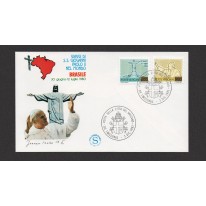 Koperta pierwszego dnia obiegu (z zestawu sześciu, na których znajduje się pełna seria znaczków) celebrująca podróże papieża Jana Pawła II w 1980 roku.