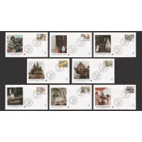 Kompletny zestaw ośmiu kopert pierwszego dnia obiegu celebrujących podróże papieża Jana Pawła II w latach 1983-1984.