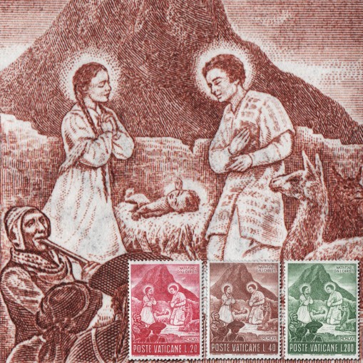 Na znaczkach widnieje scena narodzenia Jezusa na tle krajobrazu peruwiańskiego.
