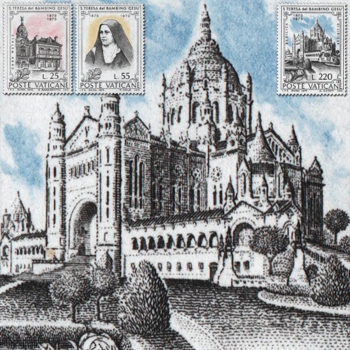 Na znaczkach widnieje miejsce jej urodzin, jej portret oraz bazylika w Lisieux wybudowana ku czci świętej.