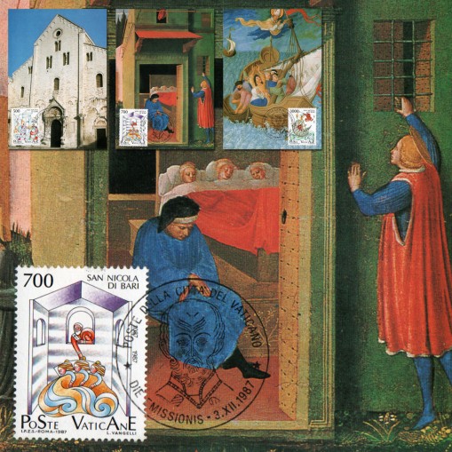 Seria na kartach maksimum upamiętniająca 900. rocznicę przeniesienia relikwii świętego Mikołaja z Miry do włoskiego Bari.