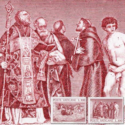 Na znaczkach widnieją fragmenty jego dzieła „Madonna z Dzieciątkiem i świętymi”.