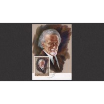 Znaczek na karcie maksimum upamiętniający pierwszą rocznicę śmierci kompozytora imieniem Zoltán Kodály.