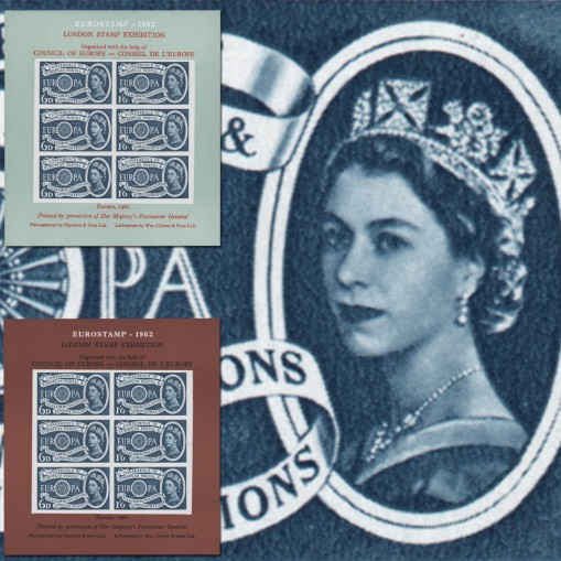 Dwa bloki fantazyjne wydane z okazji wystawy filatelistycznej „EUROSTAMP 1962” w Londynie.