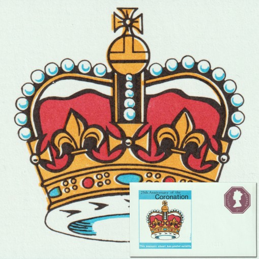 Kartka pocztowa z nadrukowanym znaczkiem upamiętniająca 25. rocznicę koronacji królowej Elżbiety II.