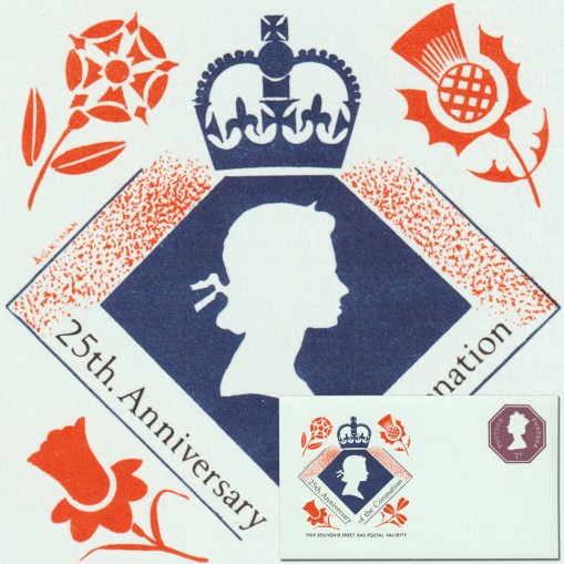Kartka pocztowa z nadrukowanym znaczkiem upamiętniająca 25. rocznicę koronacji królowej Elżbiety II.
