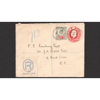 Dodatkowo na kopercie widnieje znaczek przesyłki poleconej i kasownik przesyłki poleconej pochodzący z urzędu Paddington.