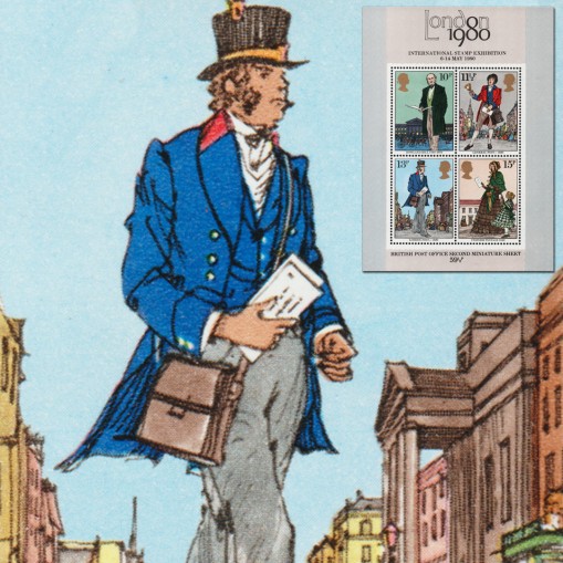 Seria w bloku upamiętniająca setną rocznicę śmierci Rowlanda Hilla, (1795-1879) uważanego za ojca znaczków pocztowych. Blok zapowiada jednocześnie Międzynarodową Wystawę Filatelistyczną „London’80”.