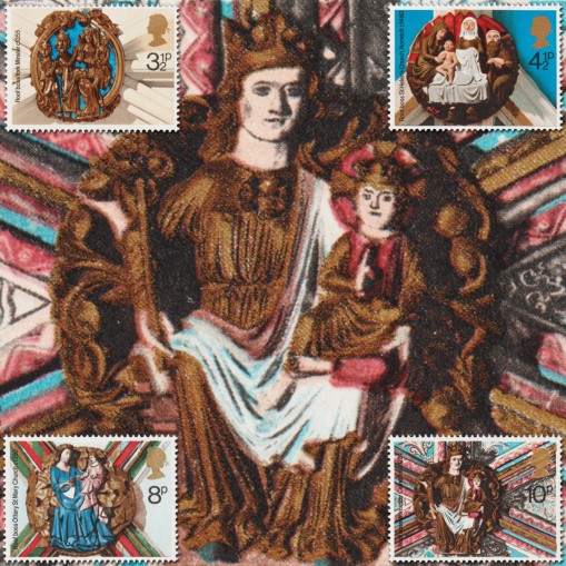 Na znaczkach widnieją zdobienia architektoniczne kościołów znajdujące się na suficie, u zwieńczenia gotyckich łuków. Przedstawiają one kolejno: pokłon Trzech Króli (katedra w York), świętą rodzinę (kościół świętej Heleny w Norwich) oraz Madonnę z Dzieciątkiem (kościół świętej Marii w Ottery i katedra w Worcester).