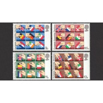 Na znaczkach widnieją ręce wrzucające urny wyborczej głos w barwach flag poszczególnych krajów Wspólnoty.