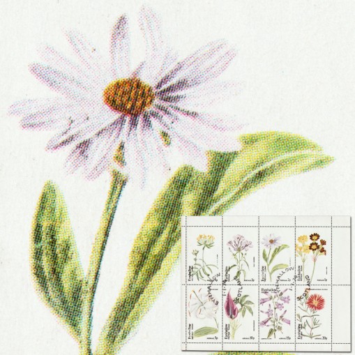 Na znaczkach tej nieautoryzowanej do obiegu pocztowego emisji przedstawiono różne gatunki kwiatów polnych.