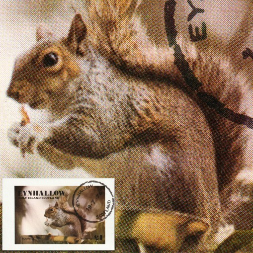 Nieautoryzowany blok, na którym przedstawiono wiewiórkę pospolitą (łac. Sciurus vulgaris).