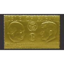Nieautoryzowany złoty znaczek, na którym widnieją Winston Churchill i John F. Kennedy.