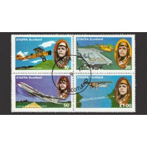 Nieautoryzowany blok przedstawiający osiągnięcia amerykańskiego pioniera lotnictwa Charlesa Lindbergha (1902-1974). Wsławił się on pierwszym samolotowym samotnym przelotem między lądem Ameryki Północnej a Europą bez międzylądowań w 1927.