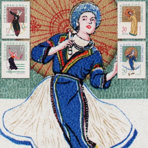 Na znaczkach widnieją tradycyjne tańce wietnamskie.