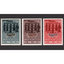 Na znaczkach widnieją ludzie pięciu ras trzymający się za ręce wokół kuli ziemskiej.