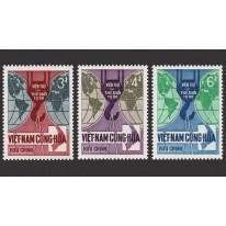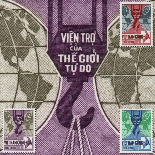 Na znaczkach widnieje hak dźwigu portowego i dwie półkule.