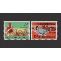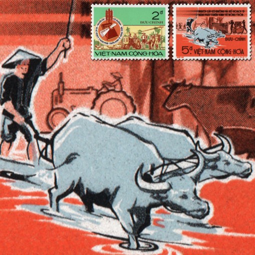 Na znaczkach widnieją pracownicy rolni i orka pługiem zaprzężonym w woły.