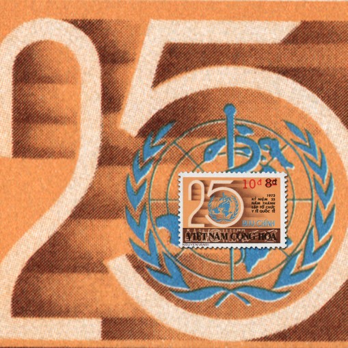 Znaczek wydany pierwotnie w 1973 roku z okazji 25-lecia Światowej Organizacji Zdrowia, tym razem z przedrukiem nominału.