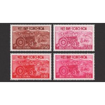 Na znaczkach widnieje traktor i widok wietnamskiej wsi.