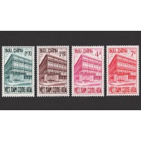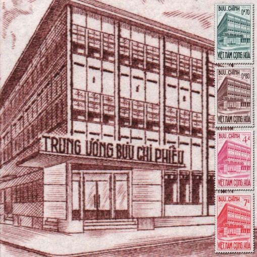 Na znaczkach widnieje budynek Urząd Czeków Pocztowych w Sajgonie (obecnie Ho Chi Minh).