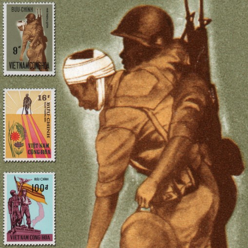 Seria, na znaczkach której widnieją weterani wojenni i pomnik im poświęcony.