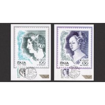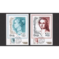 Seria na kartach maksimum, na znaczkach której widnieją przedstawienia kobiet w sztuce, kolejno:
