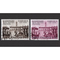 Na znaczkach widnieje rzymski plac na Kapitolu (Piazza del Campidoglio), przy którym znajdują się Muzea Kapitolińskie - miejsce podpisania traktatów.