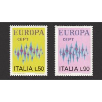 Projektantem emisji EUROPA z 1972 roku był artysta fiński Paavo Huovinen, zaś dizajn to znana filatelistom zorza polarna (Aurora borealis) - każdy przebłysk reprezentuje kraj członkowski wspólnej Europy. Dla ciekawości, Aurora (pol. jutrzenka, zorza) była w mitologii rzymskiej boginią zorzy porannej, brzasku i świtu (poranku). Była utożsamiana z grecką Eos.
