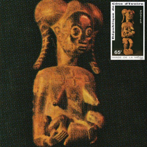 Na znaczku widnieje tradycyjna afrykańska figurka przedstawiająca matkę z dzieckiem.