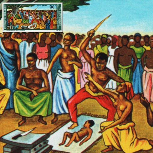 Na znaczku widnieje obraz artysty z Wybrzeża Kości Słoniowej imieniem Nandju Legue przedstawiającego sąd Salomona.