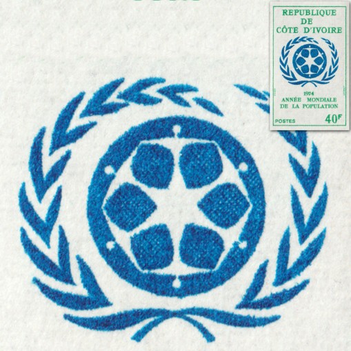 Znaczek upamiętniający Światowy Rok Ludności. Widnieje na nim jego logo.