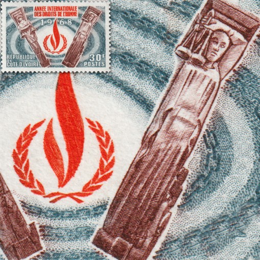 Znaczek wydany z okazji Roku Praw Człowieka, obchodzonego w 20-lecie uchwalenia Deklaracji Praw Człowieka.