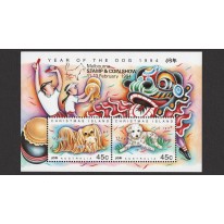 Seria w bloku wydanym pierwotnie z okazji chińskiego Nowego Roku - Roku Psa, tym razem ze złotym nadrukiem upamiętniającym wystawę filatelistyczno-numizmatyczną w australijskim Melbourne.